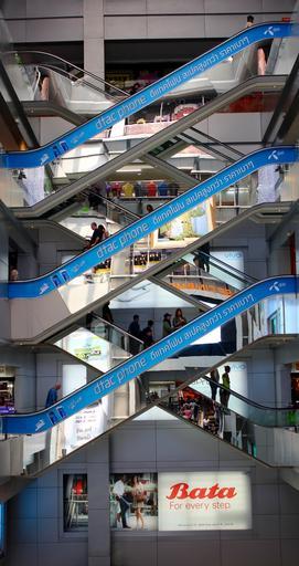 Keywords: escalator bangkok thailand shopping center big city architecture