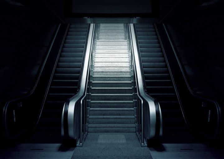 Keywords: escalator metro stairs subway urban station staircase stairway travel transport business underground dark
