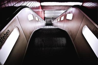 Keywords: escalator subway station stairs down downstairs subway station metro travel transportation public transport underground