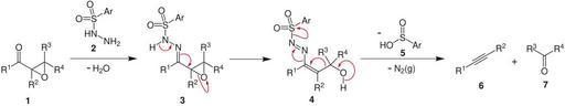 Keywords: Eschenmoser-Fragmentierung.svg de Mechanismus der Eschenmoser-Fragmentierung own Faynara 2010-08-18 Eschenmoser fragmentation