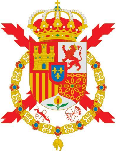 | Keywords: Escudo de Juan Carlos I de España.svg Las armas del Rey de España están formadas por un escudo cuartelado El primero de gules con un castillo de oro almenado de tres almenas y donjonado de tres torres cada una con tres almenas de lo mismo mazonado de sable y aclarado de azur que es de Castilla; El segundo de plata con un león rampante de gules coronado de oro lampasado y armado de lo mismo que es de León; El tercero de oro con cuatro palos de gules que es de Aragón; El cuarto de gules con una cadena de oro puesta en orla en cruz y en aspa con un punto de sinople en abismo que es de Navarra Entado en punta de plata con una granada al natural rajada de gules sostenida tallada y hojada de dos hojas de sinople que es de Granada En escusón de azur y fileteado de gules tres flores de lis de oro símbolo de la Casa de Borbón Lleva acolada al escudo la Cruz roja de Borgoña símbolo de sus antepasados Borgoñones y Austrias Y a diestra y siniestra de la punta del mismo un yugo de gules en su posición natural con cintas de lo mismo y un haz de cinco flechas de gules con puntas hacia abajo y cintas de lo mismo símbolo de los Reyes Católicos Él todo rodeado del collar de la Orden del Toisón de Oro y rematado de corona del mismo metal y pedrería con ocho florones visibles cinco y ocho perlas intercaladas cerradas con ocho diademas guarnecidas también de perlas y rematadas con una cruz sobre un orbe que es la Real de España Regla número 1 del Título II del Real Decreto 1511/1977 Own HansenBCN primer diseño Xinese-v Xinese-v 50px Coats of arms of Juan Carlos I of Spain 2 SVG coats of arms of Spain |