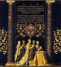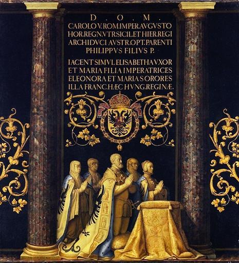 | Keywords: Esculturas-orantes-carlos-v-pantoja-de-la-cruz-el-escorial.jpg El lienzo representa el grupo orante del emperador Carlos I de España 1500-1558 y de su familia que se encuentra en el lado del Evangelio de la basilica del monasterio del Escorial y fue labrado en el siglo XVI por el orfebre y escultor italiano Pompeo Leoni Además Carlos I y sus familiares están enterrados en dicho monasterio aunque en el Panteón de Reyes y no en la basílica 1599 oil canvas Size cm 161 177 Institution Monasterio de San Lorenzo El Escorial http //www revistadearte com/2008/09/14/esculturas-orantes-de-carlos-v-y-su-familia-juan-pantoja-de-la-cruz/ object history exhibition history credit line accession number http //www revistadearte com/2008/09/14/esculturas-orantes-de-carlos-v-y-su-familia-juan-pantoja-de-la-cruz/ PD-old-100 Royal tombs in the Basilica of San Lorenzo de El Escorial Paintings by Juan Pantoja de la Cruz in the monastery de El Escorial 16th-century paintings of monastery de El Escorial 16th-century paintings in the monastery de El Escorial Charles V Holy Roman Emperor in paintings Mary of Habsburg Coat of arms of Charles V Holy Roman Emperor Or shield variant Ermine clothing in art Portraits with Latin captions Portraits with praying hands Order of the Golden Fleece in heraldry Heraldic imperial crown of Charles V Isabella of Portugal in paintings 1599 |