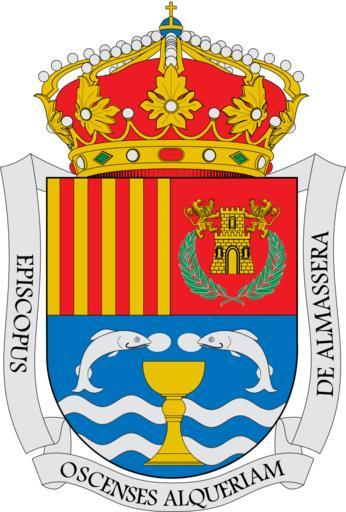 | Keywords: Escut d'Almàssera.svg Almàssera Horta Nord «Semipartit i truncat Al primer d'or els quatre pals de gules Al segon de gules castell d'or acompanyat de dues palmes de sinople perfilades de plata i somat d'una torre d'or acompanyada de dos lleons també d'or Al tercer d'atzur el calze d'or acompanyat de dos peixos d'argent portant cadascú en la seua boca la sagrada forma també d'argent i sostingut d'ones d'argent i atzur Al timbre corona reial tancada» http //www boe es/boe/dias/1979/04/16/pdfs/A08780-08780 pdf Real Decret 774/1979 9-III BOE 16 abril 1979 traducció Almácera Horta Nord «Medio partido y cortado Primero de oro los cuatro palos de gules Segundo de gules castillo de oro acompañado de dos palmas de sinople perfiladas de plata y sumado de una torre de oro acompañada de dos leones del mismo metal Tercero de azur el cáliz de oro acompañado de dos peces de plata trayendo cada uno en su boca una Forma del mismo metal y sostenido de ondas de plata y azur Al timbre corona real cerrada» http //www boe es/boe/dias/1979/04/16/pdfs/A08780-08780 pdf Real Decreto 774/1979 9-III BOE 16 abril 1979 own Mutxamel 2009-02-02 insignia Coa blazon Coats of arms of municipalities of the province of Valencia Almàssera Miracle dels Peixets |