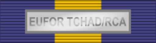 | Keywords: ESDP Medal EUFOR TCHAD-RCA ribbon bar.png en ESDP Medal with EUFOR TCHAD/RCA clasp ribbon bar pl Baretka Medalu ESDP za misję EUFOR w Czadzie i Republice Środkowoafrykańskiej own http //www eekelers-centini be/catalog/images/05_987sl080430y JPG ribbon bar - www eekelers-centini be http //www eekelers-centini be/catalog/images/01_987md080430a JPG ESDP Medal EUFOR TCHAD/RCA - www eekelers-centini be http //www vredesmissies nl/tsjaad/eufor/eufor 20tchad 20medal gif ESDP Medal EUFOR TCHAD/RCA - www vredesmissies nl http //www bmlv gv at/ausle/eufor_tschad/galerie/vollbild/medal_einzeln jpg ESDP Medal EUFOR TCHAD/RCA - www bmlv gv at Mboro 2009-10-21 100px Ribbon bars of the European Union EUFOR EUFOR in Tchad |