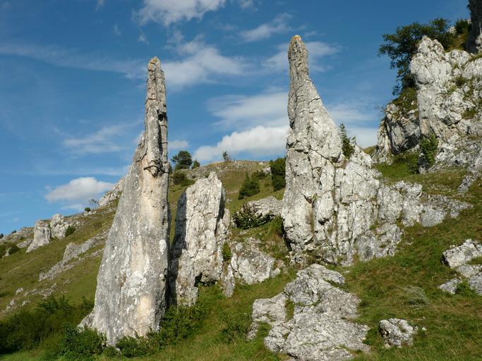 Keywords: EselsburgerTal2.jpg verwitterter Karstfelsen Steinerne Jungfrauen im Eselsburger Tal Schwäbische Alb Weathered karst rock formation called Steinerne Jungfrauen in Eselsburger Tal Swabian Alb Own Ramessos 2009-09 Valleys of Germany Karst topography in Germany Landkreis Heidenheim Schwäbische Alb Eselsburger Tal Weißer Jura |