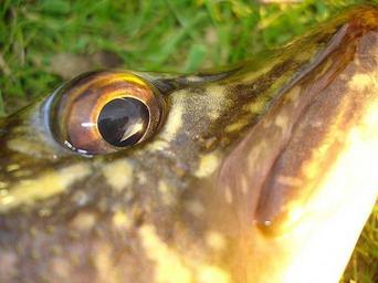 Keywords: Esox Lucius Eye.jpg Eye of a European pike Esox Lucius Own Geert Vandeplancke Free use Esox lucius anatomy Fish eyes