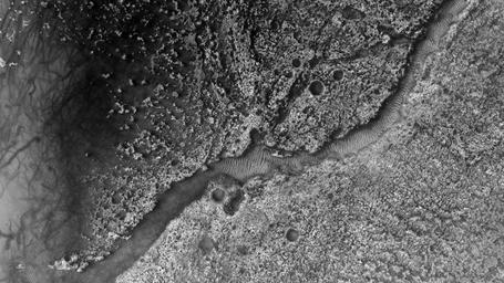 | Keywords: mars nasa mro jpl university of arizona universityofarizona landscape geology science blackandwhite monochrome texture abstract black and white Layered Bedrock on Crater Floor NASA/JPL/University of Arizona (5 km top to bottom, North is approximately to the left, 270 km above the surface. www.uahirise.org/ESP_024833_1745) Layered Bedrock on Crater Floor NASA/JPL/University of Arizona (5 km top to bottom, North is approximately to the left, 270 km above the surface. www.uahirise.org/ESP_024833_1745) |