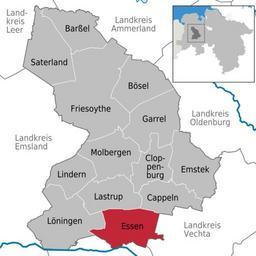 | Keywords: Essen in CLP.svg DeLocMaps Essen Essen Oldenburg Landkreis Cloppenburg District of Cloppenburg Cloppenburg district L'arrondissement de Cloppenburg Arrondissement de Cloppenburg Niedersachsen Basse-Saxe Lower Saxony TUBS/Translation own Adobe Illustrator based on File Lower Saxony location map svg NordNordWest http //www geodaten niedersachsen de/master/C17415881_N17416128_L20_D0_I15258844 html Niedersachsen Viewer File Locator map DH in Lower Saxony svg TUBS 2009-07-09 Hagar66 based on work of TUBS <gallery> file Municipalities in CLP svg </gallery> TUBS GFDL cc-by-3 0 2 5 2 0 1 0 cc-by-sa-3 0 2 5 2 0 1 0 TUBS/Credits Locator maps of municipalities in Landkreis Cloppenburg |