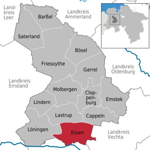 Keywords: Essen in CLP.svg DeLocMaps Essen Essen Oldenburg Landkreis Cloppenburg District of Cloppenburg Cloppenburg district L'arrondissement de Cloppenburg Arrondissement de Cloppenburg Niedersachsen Basse-Saxe Lower Saxony TUBS/Translation own Adobe Illustrator based on File Lower Saxony location map svg NordNordWest http //www geodaten niedersachsen de/master/C17415881_N17416128_L20_D0_I15258844 html Niedersachsen Viewer File Locator map DH in Lower Saxony svg TUBS 2009-07-09 Hagar66 based on work of TUBS <gallery> file Municipalities in CLP svg </gallery> TUBS GFDL cc-by-3 0 2 5 2 0 1 0 cc-by-sa-3 0 2 5 2 0 1 0 TUBS/Credits Locator maps of municipalities in Landkreis Cloppenburg |