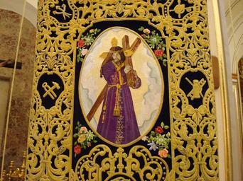 Keywords: Estandarte Paso Morado.JPG Estandarte titular del Paso Morado representa la imagen del Cristo del Perdón Semana Santa Lorca Own 2008-03-20 Awuachumele Holy Week in Lorca Religious standards in Spain