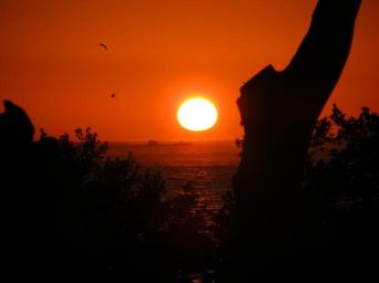 Keywords: estero island florida sunset sky sea ocean water silhouettes nature outside waves silhouette trees sun beautiful orange shoreline birds coast waterbirds water bird bird boat mariner