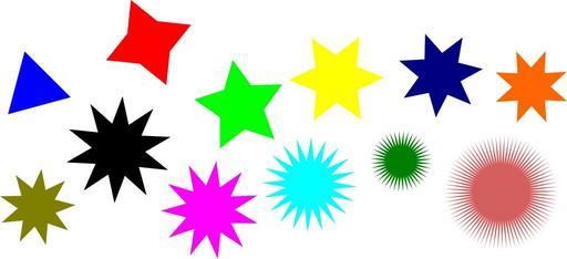 Keywords: Estrellas.svg Estrellas polígonos estrellados Steloj Gwiazdy Own 2008-05-08 Tartaglia Polygons Red stars Four pointed stars Five-pointed stars Green stars SVG stars Yellow stars Black stars Blue triangles Purple stars