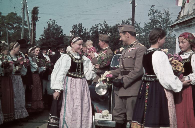 Keywords: Észak-Erdély. Fortepan 3967.jpg hu Észak-Erdély Location Romania Transylvania Tags colorful soldier officer flower folk costume Title Észak-Erdély http //www fortepan hu/_photo/download/fortepan_8552 jpg 1940 Fortepan 3967 http //www fortepan hu/_photo/download/fortepan_8552 jpg http //www fortepan hu/ lang en img 3967 Unknown The release at fortepan hu is CC-BY-SA-3 0 As the photographer is unknown or pseudonymous and the photograph is Age 1940 01 01 years old it is considered public domain both in the country of publication Hungary and the USA where Wikimedia Commons is hosted See Fortepan HU for more information on related uploads PD-anon-70-EU PD-anon-auto-1996 1940 Hungary DEFAULTSORT Fortepan 003967 1940 photographs Images uploaded by Fæ Colour photographs from Fortepan Traditional clothes of Hungary Northern Transylvania Second Vienna Award Military history of Hungary during World War II World War II color photographs in Hungary |