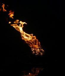 Keywords: Eternal flame in Toronto's Peace garden, with a bit more wind and guttering fire flame blaze torch toronto peace symbol burning