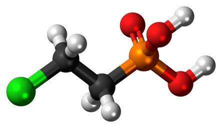 | Keywords: Ethephon-3D-balls.png Ball-and-stick model of the ethephon molecule the most widely used plant growth regulator Colour code 505050 Carbon C black<br> F0F0F0 Hydrogen H white<br> F51E1E Oxygen O red<br> FA8C00 Phosphorus P orange<br> 14F014 Green Chlorine Cl<br> 2011-06-11 own DS Visualizer Jynto talk Space-filling version cc-zero Phosphonic acids Organochlorides Ball-and-stick models Images by Jynto | ||||