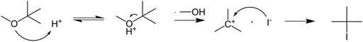 Keywords: Ether-cleavage-sn1.svg en Acid catalysed cleavage of an ether in an Sn1 reaction own Wampenseppl 2011-09-01 created with Inkscape validSVG Cc-zero Chemical reactions