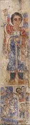 | Keywords: Ethiopian - Archangel Michael and the Crossing of the Red Sea - Walters 36131.jpg Together with its companion on the opposite pillar this work originally flanked the entrance to the mäqdäs or sanctuary of an Ethiopian church where it served as a guardian figure Here the archangel Michael acts a protector of the Jewish people The Old Testament scene beneath him is divided into three parts On the left the Red Sea consumes Pharaoh and his army while on the right Moses closes the waters with his staff Below Aaron's sister Miriam and another woman sing songs of praise This object is one of only a handful of such monumental wall paintings that can be seen outside of Ethiopia middle Other date century 19 Modern tempera canvas cm 205 55 accession number 36 13 1 36885 Paul Stewart London date and mode of acquisition unknown Sam Fogg London date and mode of acquisition unknown Walters Art Museum 2001 by purchase Museum purchase with funds provided by an anonymous donor 2001 Angels of Light Ethiopian Art from the Walters Art Museum Birmingham Museum of Art Birmingham; Smith College Museum of Art Northampton; Museum of Biblical Art New York 2006-2007 place of origin Ethiopia Walters Art Museum license 2D Art of Ethiopia in the Walters Art Museum Church paintings in Ethiopia Paintings in the Walters Art Museum Media contributed by the Walters Art Museum needs category review Tempera on canvas |