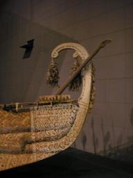 | Keywords: Ethnologisches Museum Dahlem Berlin Mai 2006 014.jpg Detail of a blue-ocean ship from Luf off the coast of Papua New Guinea This boat was constructed in 1890 and brought to Berlin in 1904 It was used by the native population of Luf for trade and warfare For longer journeys into the open sea it could transport up to 50 persons A platform was used to transport goods To stabilise the ship depending on the winds the crews would move to different locations on the ship the platform and a small bridge The ship itself was carved out of a single large treetrunk Plant adhesive was used for insulation against the water The whole ship was constructed without a single nail all parts are held together with plant material The rectangular sails are typical for the region but unusual for the wider Oceanic region This ship is the last of its kind and kept at the Ethnologisches Museum Berlin-Dahlem The population of Luf became extinct in 1940 own 2006-05 Gryffindor I release it into the public domain Ship from Luf Ethnological Museum Berlin |