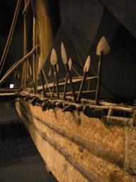 | Keywords: Ethnologisches Museum Dahlem Berlin Mai 2006 017.jpg Detail of a blue-ocean ship from Luf off the coast of Papua New Guinea This boat was constructed in 1890 and brought to Berlin in 1904 It was used by the native population of Luf for trade and warfare For longer journeys into the open sea it could transport up to 50 persons A platform was used to transport goods To stabilise the ship depending on the winds the crews would move to different locations on the ship the platform and a small bridge The ship itself was carved out of a single large treetrunk Plant adhesive was used for insulation against the water The whole ship was constructed without a single nail all parts are held together with plant material The rectangular sails are typical for the region but unusual for the wider Oceanic region This ship is the last of its kind and kept at the Ethnologisches Museum Berlin-Dahlem The population of Luf became extinct in 1940 own 2006-05 Gryffindor I release it into the public domain Ship from Luf Ethnological Museum Berlin |