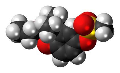 | Keywords: Ethofumesate-3D-spacefill.png Space-filling model of the ethofumesate molecule a herbicide Colour code 505050 Carbon C black<br> F0F0F0 Hydrogen H white<br> F51E1E Oxygen O red<br> FAEB00 Sulfur S yellow<br> 2011-01-21 own <br> DS Visualizer Jynto talk Ball-and-stick version cc-zero Mesylate esters Benzodihydrofurans Acetals Ethyl ethers Herbicides Images by Jynto Space-filling models | ||||