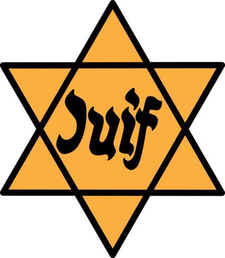 Keywords: Étoile jaune en français.svg Yellow badge A yellow badge a cloth patch that Jews were ordered by nazis to sew on their outer garments in order to mark them as Jews in public during the Holocaust Une étoile jaune une pièce de tissu en forme d'étoile de David et de couleur jaune imposée par le régime nazi comme signe vestimentaire distinctif aux Juifs d'Allemagne d'abord puis à ceux des zones conquises au cours de la Seconde Guerre mondiale France Pays-Bas etc self-made based on a photograph created with Inkscape 2008-02-04 IP 84 5