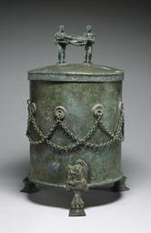 | Keywords: Etruscan - Cista Depicting a Dionysian Revel and Perseus with Medusa's Head - Walters 54136.jpg Cistae were containers used to safeguard precious objects including mirrors perfume flasks and cosmetics A particular type of cista was made during the 4th and 3rd centuries BC in Praeneste a site in Latium the region around Rome that was heavily influenced by Etruscan culture The elaborately engraved scenes are thought to imitate famous but now lost Greek wall-paintings The ancient metalworker often pressed a white substance into the engraved lines in order to accentuate the decoration The handles commonly take the form of human figures Many artists in other early Italian cultures similarly incorporated figures of humans in functional objects century 4 3 BC bronze cm 51 5 26 5 accession number 54 136 5608 Don Marcello Massarenti Collection Romedate and mode of acquisition unknown Henry Walters city Baltimore Walters Art Museum Henry Walters Acquired by Henry Walters with the Massarenti Collection 1902 place of origin Praeneste present-day Palestrina Italy Walters Art Museum license Cistae from Praeneste Etruscan bronzes from Italy Etruscan art in the Walters Art Museum Media contributed by the Walters Art Museum needs category review |