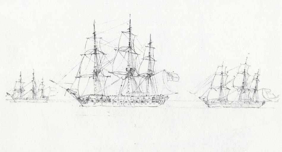 Keywords: Etude-Antoine Roux-p58.jpg Study British frigate squadron Jean Meissonnier Voiliers de l'Époque romantique Edita Lausanne 1991 ISBN 2-88001-273-2 p 58 Creator Antoine Roux PD-art-100 Antoine Roux