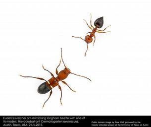 Public domain image by Alex Wild, produced as part of the Insects Unlocked project at the University of Texas at Austin. beetle insects evolution ants mimicry entomology cerambycidae formicidae crematogaster longhornbeetles |
