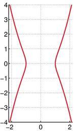| Keywords: Eudoxus.png Graph of Kampyle of Eudoxus own 2007-06-14 Donald Hosek Created with MATLAB Donald Hosek Source code MATLAB <source lang matlab > Kampyle illustration function main linewidth and font size lw 6; fs 20; colors red 0 867 0 06 0 14; blue 0 129 205/256; green 0 200 70/256; black 0 0 0; white 0 99 1 1 1; N 500; number of points don't make it big code will be slow Lx1 -3; Lx2 3; Ly1 -4; Ly2 -Ly1; bd 0 01; for i 1 10 Set up the plotting window figure 1 ; clf; set gca 'fontsize' fs 'linewidth' lw/4 ; hold on; axis equal; grid on; figure 2 ; clf; hold on; axis equal; axis off; X Y meshgrid linspace Lx1 Lx2 N linspace Ly1 Ly2 N ; x X; y Y; a 1; Z x 4- x 2+y 2 ; graph the curves using 'contour' in figure 2 figure 2 ; c stuff contour X Y Z 0 0 ; extract the curves from c and graph them in figure 1 using 'plot' need to do this kind of convoluted work since plot2svg can't save the result of 'contour' but can save the result of 'plot' m n size c ; while n > 0 l c 2 1 ; x c 1 2 l+1 ; y c 2 2 l+1 ; get x and y of contours figure 1 ; plot x y 'color' red 'linewidth' lw/2 ; c c l+2 n ; m n size c ; Lx1 min Lx1 min x - bd ; Lx2 max Lx2 max x + bd ; Ly1 min Ly1 min y - bd ; Ly2 max Ly2 max y + bd ; end figure 1 ; axis equal; axis Lx1 Lx2 Ly1 Ly2 ; end axis -2 2 2 2 -4 4 ; saveas gcf 'Kampyle eps' 'psc2' </source> Kampyle of Eudoxos Images with Matlab source code |