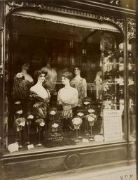 | Keywords: Eugène Atget, Boulevard de Strasbourg - Getty Museum.jpg Artwork en When creating this photograph of a hairdresser's shop window Eugène Atget documented the fashionable pompadours and upsweeps of the period as well as the popular plunging necklines and draping shawls This establishment offered a wide variety of hairstyling services from cutting to dressing and a selection of wigs both full and partial To make the shop's services and wares more alluring the mannequins wear elaborate cosmetics and filmy delicate fabrics Beginning in the mid-1800s when haute couture first appeared Paris dictated the chic mode in women's styles Fashion plates and journals throughout Europe and America illustrated French garments and accessories Although Atget specifically avoided photographing subjects associated with fashion and individual display this composition reveals his fascination for how shopkeepers exhibited their wares 1912 Gelatin silver chloride printing-out paper print Image 23 x 17 9 cm 9 1/16 x 7 1/16 in Institution Getty Museum object history exhibition history other versions 69980 Markings Atget Paris wet stamp verso print Inscription Inscribed verso print - - Bd de Strasbourg ; negative number inscribed in negative credit line accession number 90 XM 64 20 PD-old-auto 1927 1912 in Paris 1912 photographs Photographs of Paris by Eugène Atget Photographs in the Getty Museum Boulevard de Strasbourg Paris Hairdressing shops in Paris Shop windows in Paris Fashion in 1912 |
