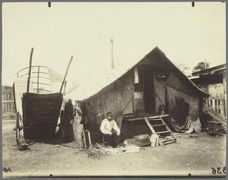 | Keywords: Eugène Atget, Porte d'Ivry, Zoniers - Getty Museum.jpg Artwork en This basket maker a resident of the no-man's-land that existed just outside the old Paris city walls paused in his work so that Eugène Atget could photograph him Seated in front of his shack with his raw materials and finished goods this humble tradesman lived in an area that many poor people especially junk collectors called home The fence along the right side and behind the dwelling shows that property in this village was clearly demarcated and more secure than many of the city's slums Atget's extensive documentation of Parisians excluded the wealthy in favor of the poor for whom he was genuinely concerned 1912 Albumen silver print Image 17 8 x 22 5 cm 7 x 8 7/8 in Institution Getty Museum object history exhibition history other versions 70051 Title and negative number partial number --336 ; hinged to four corners on mount inscribed verso print Secondary Inscription Inscribed verso print in the hand of André Jammes dimensions for publication in blue pencil and Coll Florent Fels ; in unknown later hand 3 credit line accession number 90 XM 64 91 PD-old-auto 1927 Basket making Rag-and-bone men in Paris Porte d'Ivry Paris 1912 in Paris 1912 photographs Photographs of Paris by Eugène Atget Photographs in the Getty Museum |