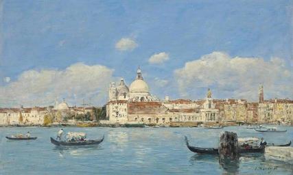 | Keywords: Eugène Boudin - Venise, la Salute, la Douane et le début du Grand Canal.jpg Artwork fr Venise la Salute la Douane et le début du Grand Canal oil canvas en 36 3 x 58 3 cm unknown Private Collection www christies com en 1895 creator Eugène Boudin Other versions Paintings by Eugène Boudin Paintings of boats in Venice Paintings of Santa Maria della Salute Venice Paintings of Dogana da mar Venice PD-old-100 | ||||