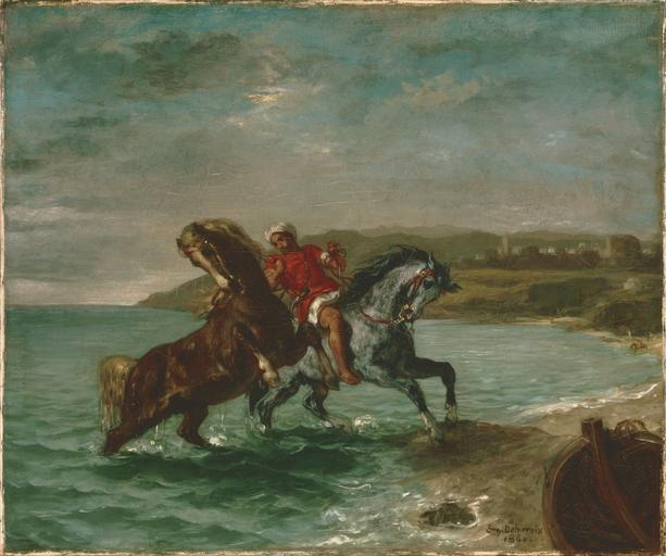 | Keywords: Eugène Delacroix - Chevaux sortant de la mer (1860).jpg Artwork Creator Eugène Delacroix 1860 oil canvas in 20 25 24 25 Institution Phillips Collection accession number 0486 http //www phillipscollection org/collection/browse-the-collection id 0486 The Phillips Collection Washington D C object history Acquired 1945 credit line exhibition history E Delacroix / 1860 ~ lower right signature and date https //artsy net/artwork/eugene-victor-ferdinand-delacroix-eugene-delacroix-horses-coming-out-of-the-sea The Phillips Collection via artsy net PD-old-100 DEFAULTSORT Delacroix 1860 Chevaux sortant de la mer Phillips Collection Paintings by Eugène Delacroix Paintings in the Phillips Collection Orientalist paintings by Eugène Delacroix Horse riding in paintings 19th-century paintings of horses |