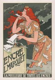 | Keywords: Eugène Grasset-Encre L Marquet.jpg Artwork creator Eugène Grasset 1841-1917 1892 lithography paper cm LA MEILLEURE DE TOUTES LES ENCRES ~ lower center text ENCRE L MARQUET ~ lower left text object history credit line accession number http //flickr com/photos/interaktion/449700952/in/photostream/ PD-old-auto-1923 1917 Advertising posters of France Eugène Grasset Women in advertisements Women writing in art Female red hair in art 1892 advertisements 1892 lithographs Women facing left in art 1892 in France Feathers in art |