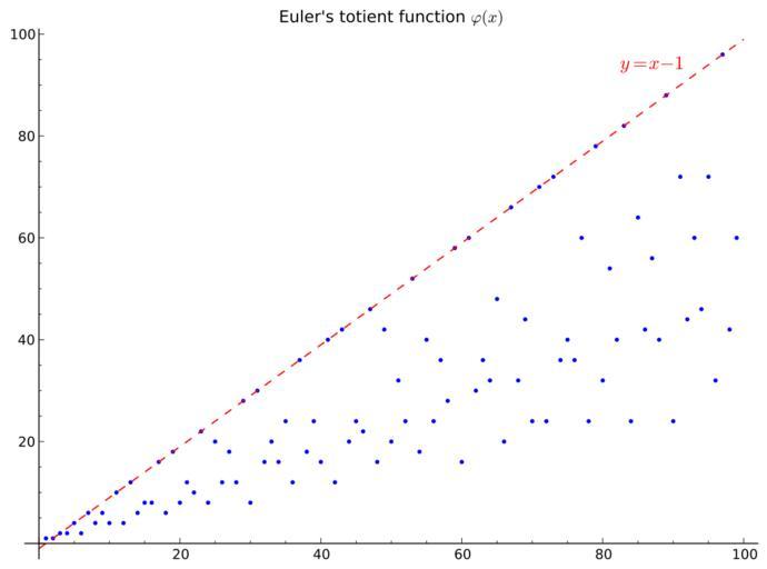 Keywords: EulerPhi100.svg Sage 6 1 1 Script <pre> P point t euler_phi t for t in srange 1 100 + plot x-1 x 0 100 linestyle -- color red title Euler's totient function \\varphi x + text y x - 1 87 94 color red fontsize 14 P save EulerPhi100 svg transparent True </pre> own User Sverdrup 2014-04-14 Image EulerPhi100 PNG cc-zero Totient function SVG diagrams Order 100 |