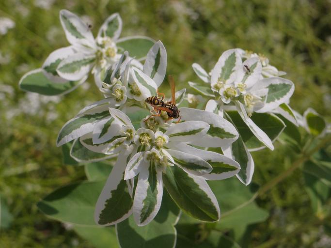 Keywords: euphorbia fringed spurge flowers flower bed garden flowers greens summer insect ornamental plant wasp nectar