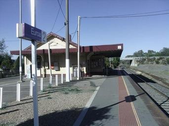 Keywords: 36 45S 145 34E Euroa railway station is located on the North East line in Victoria, Australia. It serves the town of Euroa. Opened 20 March 1873. attribution: Brad F 89
