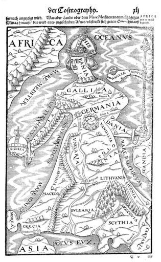| Keywords: Europe as a Queen by Sebastian Münster.jpg en Map of Europa depicted as a queen by Sebastian Münster 1628 Piotr Greiner Andrzej Złoty Ruda Śląska w dawnej kartografii Bractwo Gospodarcze Związku Górnośląskiego Katowice 2006 ISBN 978-83-60367-24-7 Creator Sebastian Münster 1628 PD-old-100 Sebastian Münster Europa regina Cosmographia |