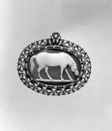 | Keywords: European - Cameo with Horse Grazing - Walters 42145.jpg A cameo is a small stone or shell carved in raised relief The stone could be precious or semi-precious and of a single color or veined with different colors- such as onyx with white veins that could be distinguished for a striking effect as here The techniques were developed in the ancient world and the subjects are often taken from the classical tradition The market for antiquities was great in the 16th century; since the differences between a Roman and a particularly ingenious 16th-century imitation were hard to distinguish many modern pieces were offered as antiques between 1525 1600 Renaissance onyx enamel copper alloy gilt mount cm 6 1 6 9 accession number 42 145 38516 Henry Walters Baltimore date and mode of acquisition unknown Walters Art Museum Henry Walters Acquired by Henry Walters Jewelry - Ancient to Modern The Walters Art Gallery Baltimore 1979-1980 Objects of Adornment Five Thousand Years of Jewelry from the Walters Art Gallery Baltimore Cooper-Hewitt National Design Museum New York; Chrysler Museum of Art Norfolk; Carnegie Museum of Art Pittsburgh; San Antonio Museum of Art San Antonio; Philbrook Museum of Art Tulsa; Honolulu Academy of Arts Honolulu; New Orleans Museum of Art New Orleans; Milwaukee Art Museum Milwaukee; Minneapolis Institute of Arts Minneapolis; Toledo Museum of Art Toledo; The John and Mable Ringling Museum of Art Sarasota 1984-1987 Jewelry from the Walters Art Museum and the Zucker Family Collection The Walters Art Gallery Baltimore 1987 place of origin Europe Walters Art Museum license Renaissance applied arts in the Walters Art Museum Art from Europe Cameos Grazing horses |