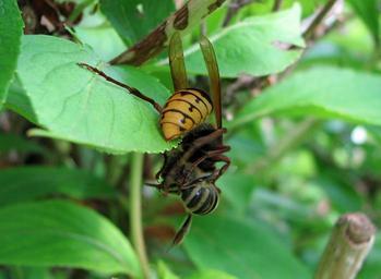 Keywords: European Hornet with prey (a Honeybee).JPG en A European Hornet with prey a Honeybee own photo HTO 2012-08-12 Vespa crabro