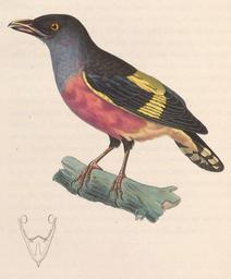 | Keywords: Eurylaimus javanicus male 1838.jpg « Eurylaimus horsfieldii » Eurylaimus javanicus Banded Broadbill - male « Eurylaimus horsfieldii » Eurylaimus javanicus Eurylaime de Horsfield - mâle http //archive org/stream/Nouveaurecueild3Temm page/n109/mode/2up Nouveau recueil de planches coloriées d'oiseaux creator Nicolas Huet le Jeune creator Jean-Gabriel Prêtre 1838 PD-old-100 Eurylaimus javanicus Nouveau recueil de planches coloriées d'oiseaux | ||||