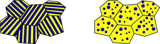 | Keywords: Eutectique lamellaire ou globulaire.svg en Eutectic crystals are made of sub-crystals of two phases α and β They can be lamellar left the lamellae are not so regular or globular right the globes are normally not spherical fr Les cristaux eutectiques sont faits de sous-cristaux de deux phases α et β Ils peuvent être lamellaires gauches les lamelles ne sont pas régulières ou globulaires les globules ne sont pas sphériques own Cdang 2009-05-19 Created with Inkscape Eutectic | ||||