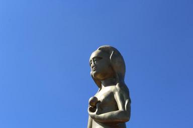 Keywords: eva gold blue sky golden character woman museum city