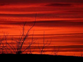 Keywords: evening branches bushes scrub sunset sky red afterglow abendstimmung dusk romantic evening sky