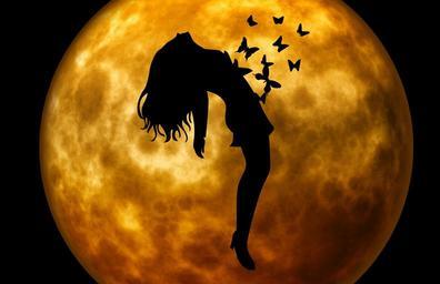 Keywords: evening moon night moonlight woman silhouette float butterflies witch