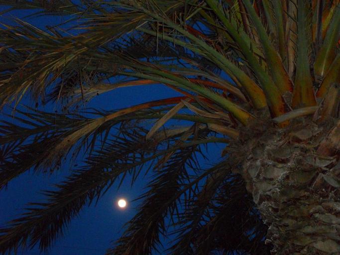 Keywords: evening night abendstimmung moon full moon light palm silhouette palm fronds sky