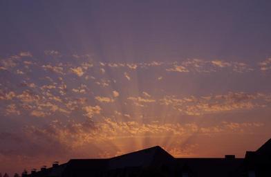 Keywords: evening sky afterglow sunset sunbeam roofs clouds