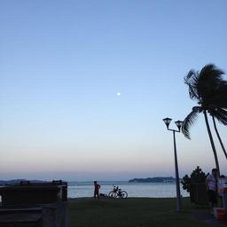 Keywords: evening sky coconut beach wind lamppost bicycle sea outdoor twilight