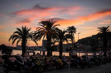 Keywords: evening sky sunset weather mood mood evening sky croatia palm trees sea coast port