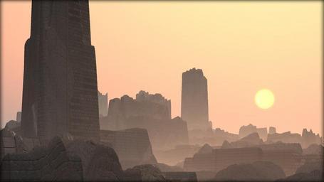 Keywords: evening sun sonenuntergang mood twilight back light sky atmosphere rest sunset abendstimmung ruins break up stones demolition city dilapidated disaster grunge